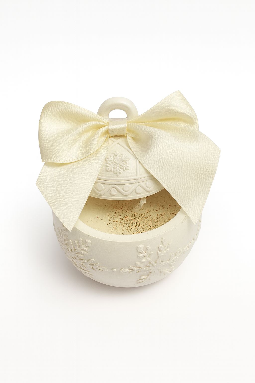 Diese kleine Kerzenkugel aus Keramik (7 × 7 cm) ist ein liebevoll gefertigtes Weihnachtsstück, das Eleganz und Natürlichkeit vereint. Das feine winterliche Muster, kombiniert mit einem hochwertigen Satinband, verleiht ihr einen märchenhaften Look – ideal für Advent, Festtage oder als edle Geschenkidee.